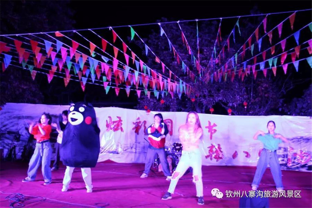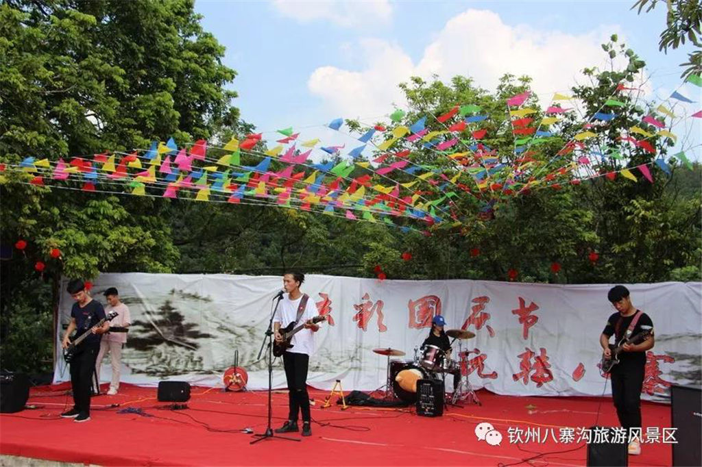 國(guó)慶期間景區(qū)舉辦以“炫彩國(guó)慶節(jié),玩轉(zhuǎn)八寨溝”為主題的系列活動(dòng)受到眾多游客親睞。游客們白天可以觀看精彩歌舞文藝演出,玩真人CS運(yùn)動(dòng),品嘗各種各樣的特產(chǎn)美食,學(xué)制作欽州坭興陶,體驗(yàn)欽州第一漂—八寨溝森林漂流,登山徒步暢游山水,呼吸新鮮空氣,天然水潭戲水其樂(lè)無(wú)窮,整個(gè)景區(qū)一片游客如織、喜樂(lè)融融的景象。