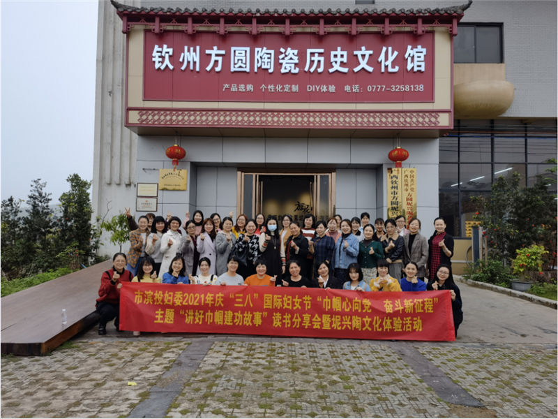 2021年3月8日,欽州市濱海新城投資集團(tuán)有限公司婦委會(huì)圍繞“巾幗心向黨,奮斗新征程”主題,組織開(kāi)展2021年慶“三八”國(guó)際勞動(dòng)?jì)D女節(jié)“講好巾幗建功故事”讀書(shū)分享會(huì)暨坭興陶文化體驗(yàn)活動(dòng),活動(dòng)在欽州方圓陶瓷歷史文化館舉行。