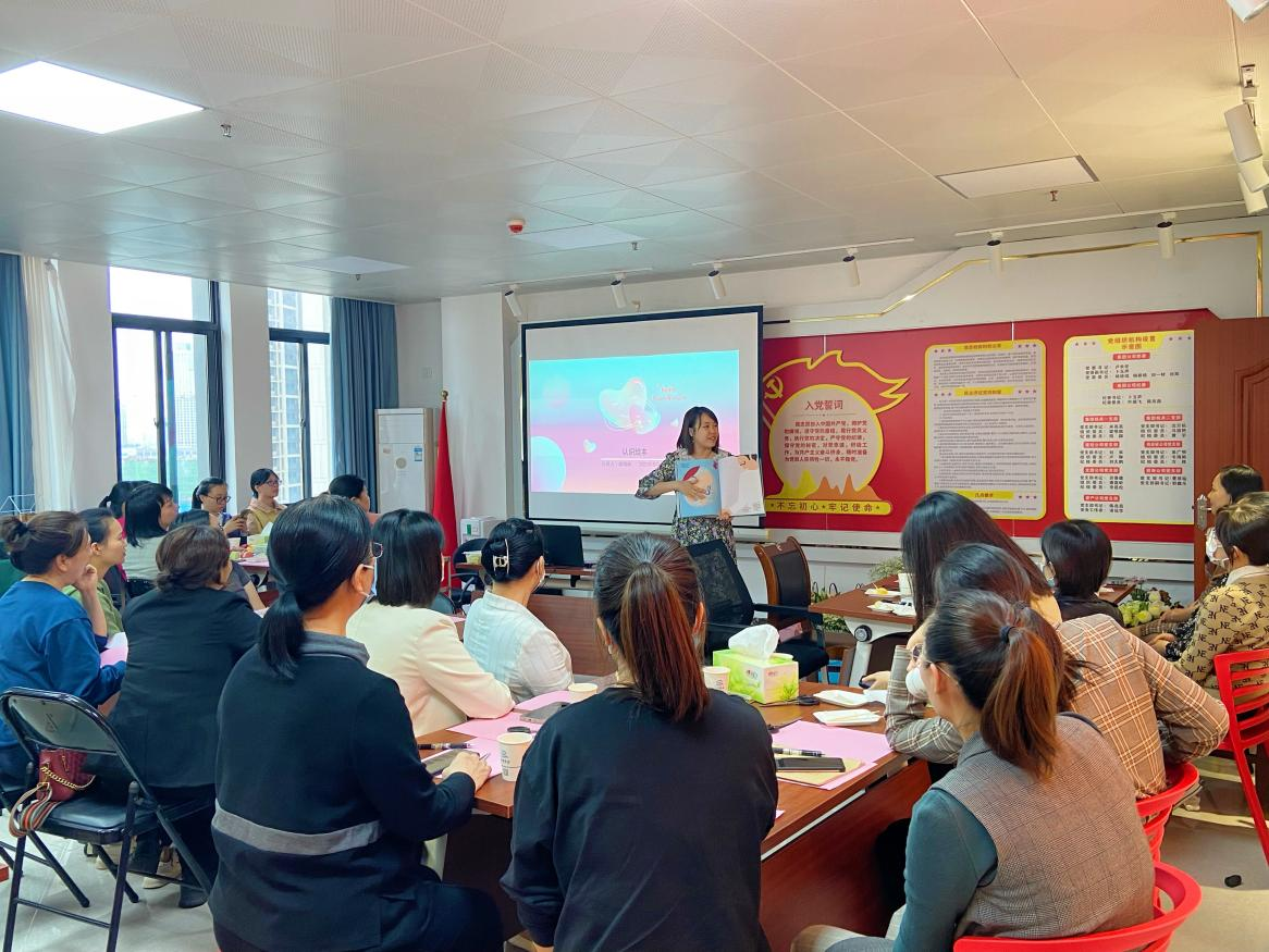 (圖為講師在給女職工分享繪本《讓我安靜五分鐘》,帶領(lǐng)大家進(jìn)入奇妙的繪本世界)