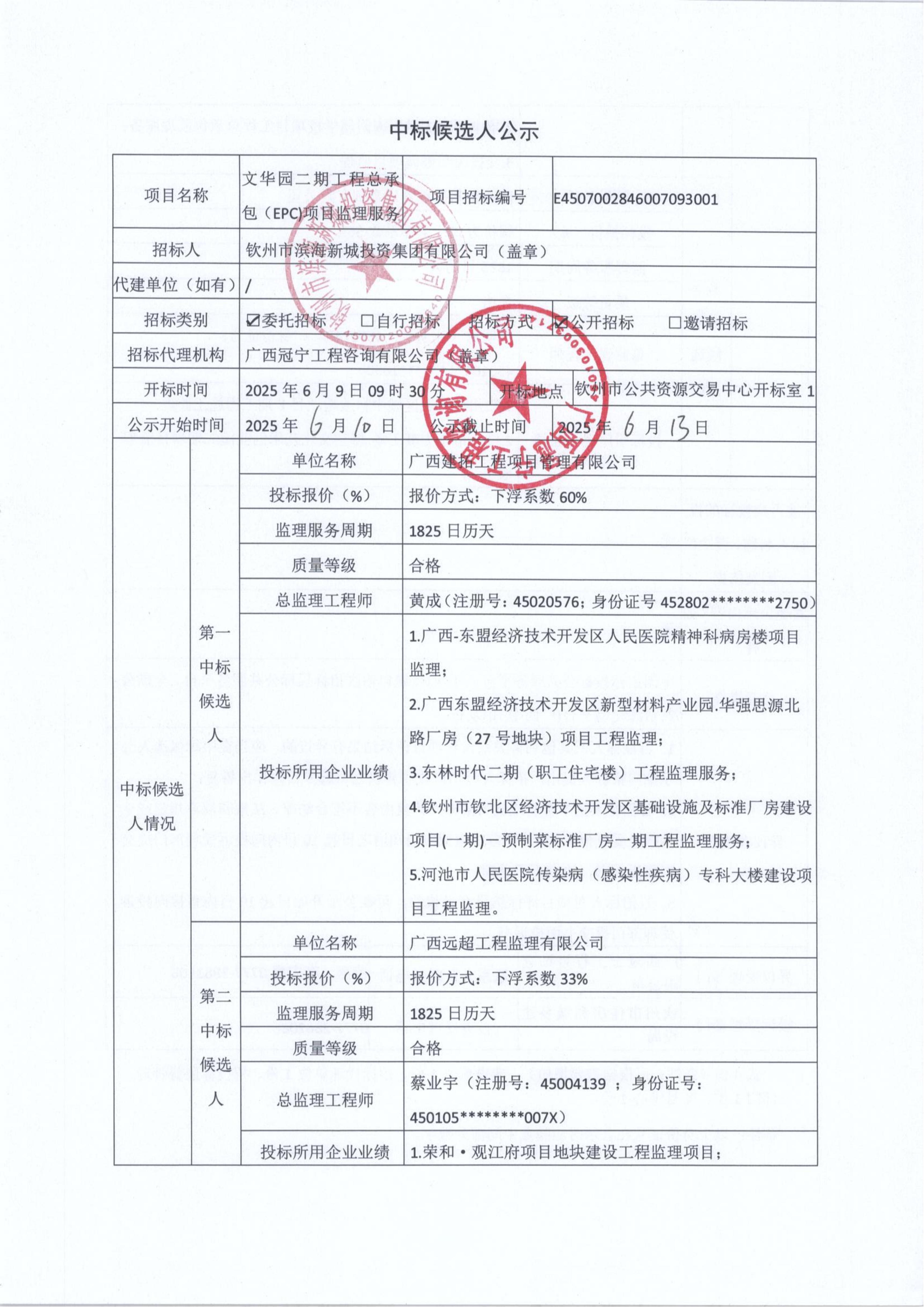 文華園二期工程總承包(EPC)項目監(jiān)理服務(wù)中標候選人公示