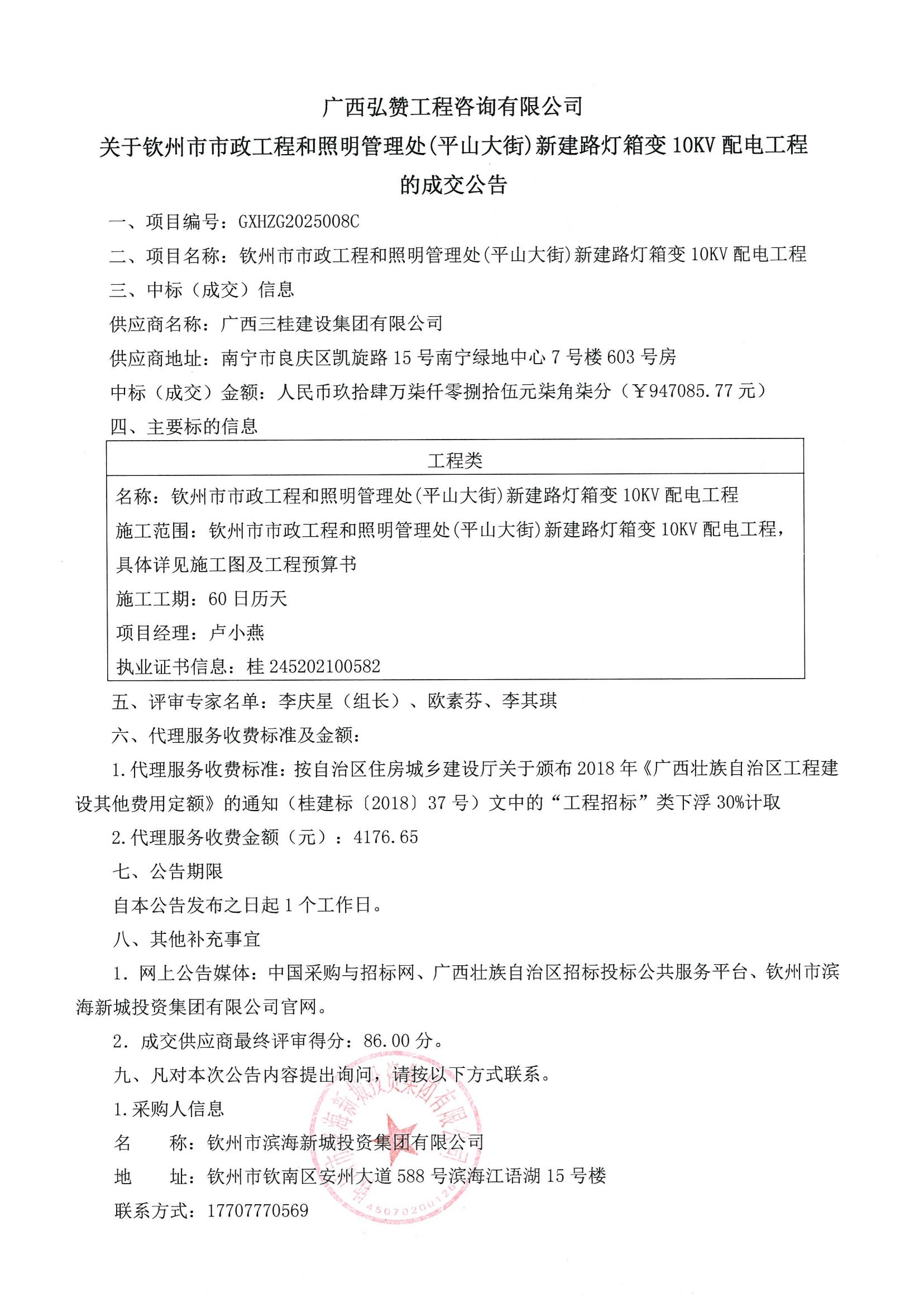 廣西弘贊工程咨詢有限公司關(guān)于欽州市市政工程和照明管理處(平山大街)新建...