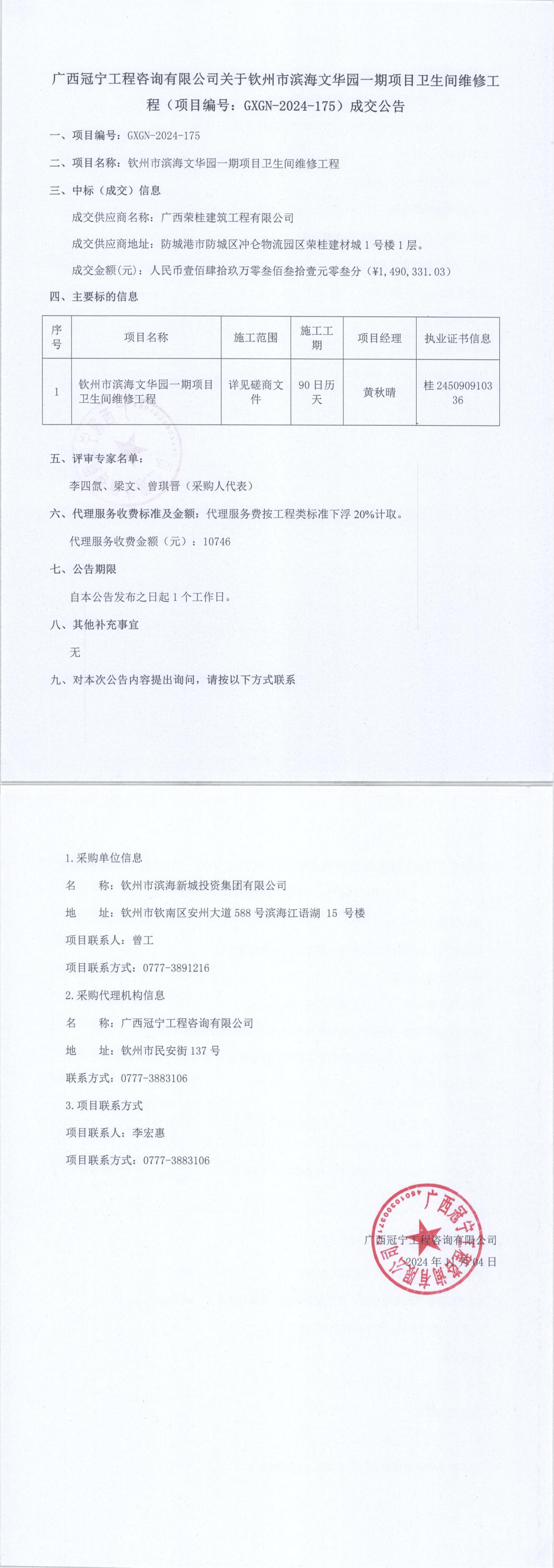 廣西冠寧工程咨詢有限公司關(guān)于欽州市濱海文華園一期項(xiàng)目衛(wèi)生間維修工程(項(xiàng)...