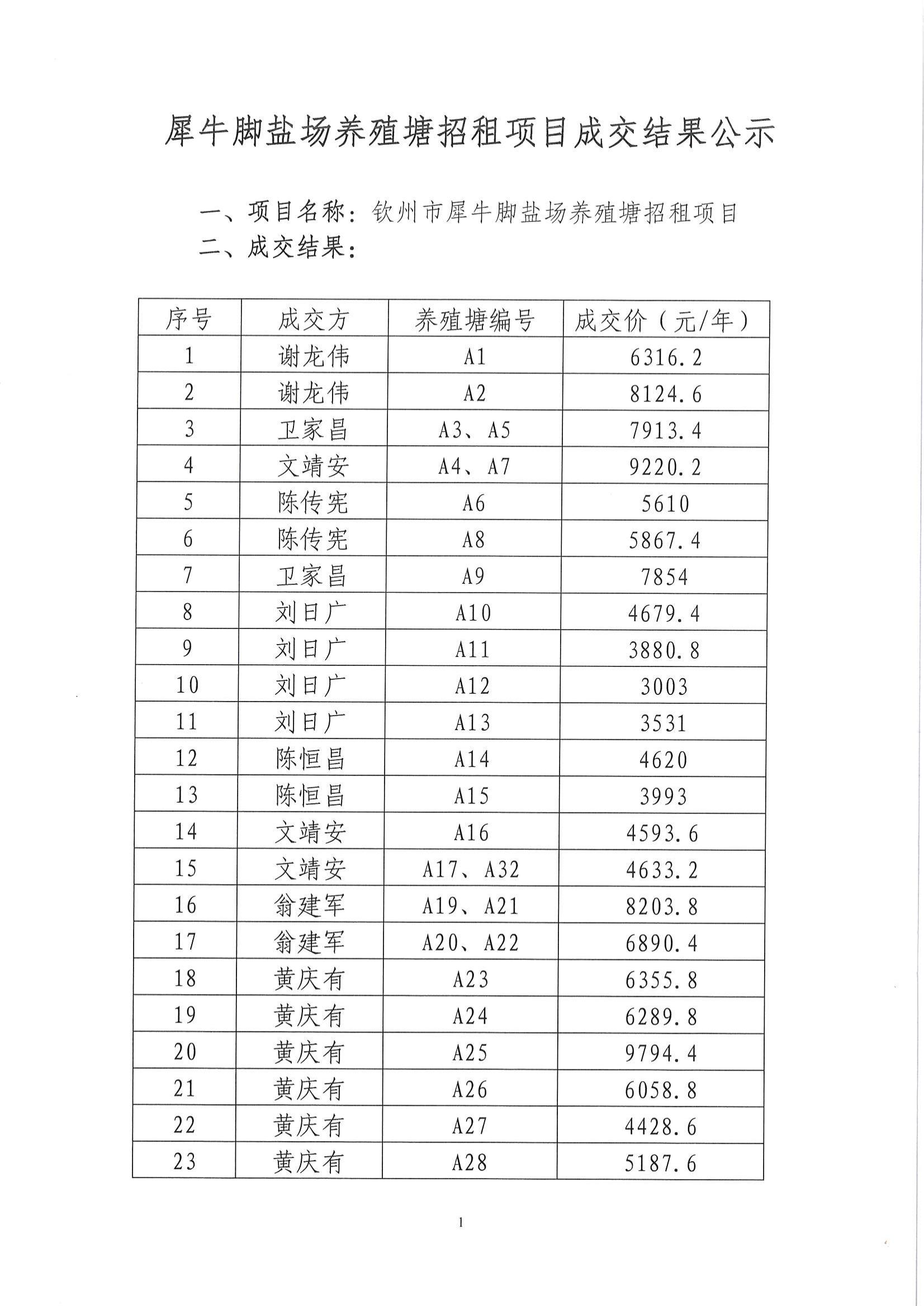 犀牛腳鹽場養(yǎng)殖塘招租項(xiàng)目成交結(jié)果公示