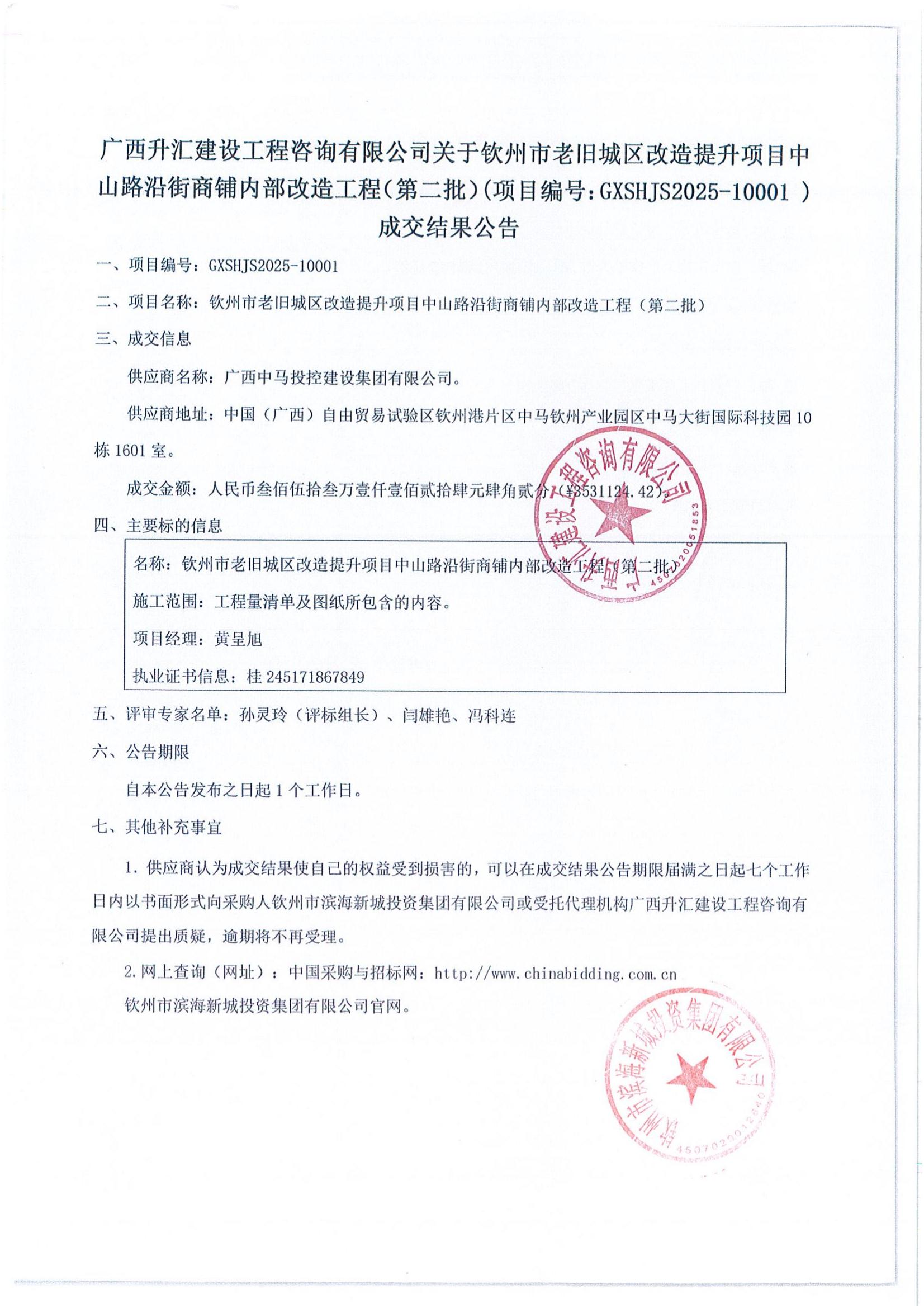 欽州市老舊城區(qū)改造提升項(xiàng)目中山路沿街商鋪內(nèi)部改造工程(第二批)-成交公...