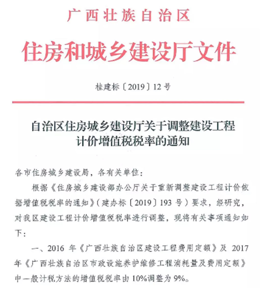 自治區(qū)住房城鄉(xiāng)建設(shè)廳關(guān)于調(diào)整建設(shè)工程計(jì)價(jià)增值稅稅率的通知