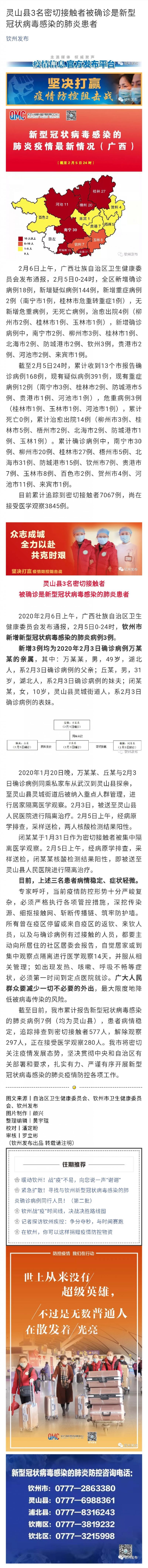 靈山縣3名密切接觸者被確診是新型冠狀病毒感染的肺炎患者