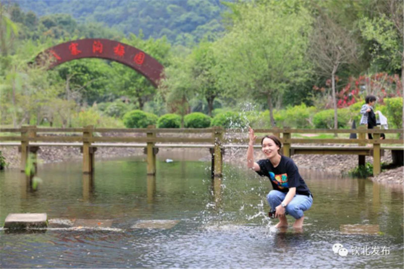 游客在梅園處戲水▽