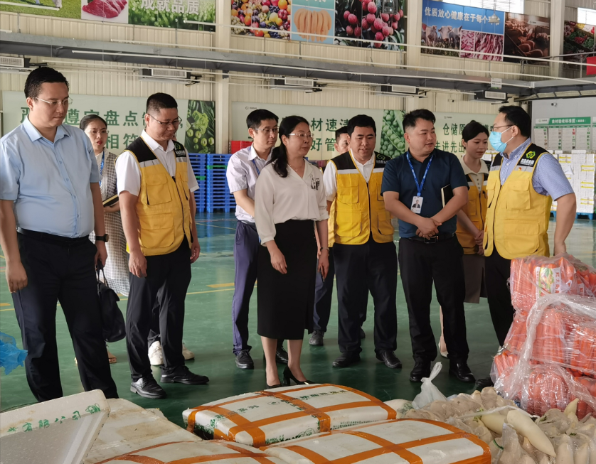 調(diào)研組成員一行先后前往濱海供應(yīng)鏈公司公共配送中心開(kāi)展實(shí)地考察調(diào)研,期間,吳廣明向調(diào)研組詳細(xì)介紹了公司業(yè)務(wù)開(kāi)展的基本情況以及公共配送中心在食材集采、收發(fā)、檢測(cè)、溯源、倉(cāng)儲(chǔ)物流的全過(guò)程。