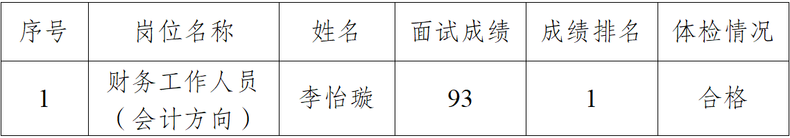 根據(jù)集團(tuán)公司2024年8月13日發(fā)布的《欽州市濱海新城投資集團(tuán)有限公司招聘公告》,經(jīng)報(bào)名、資格審查、面試、考察、體檢等程序,經(jīng)集團(tuán)公司黨委研究決定,現(xiàn)對(duì)欽州市濱海投資集團(tuán)有限公司財(cái)務(wù)工作人員(會(huì)計(jì)方向)崗位擬聘用人選予以公示。