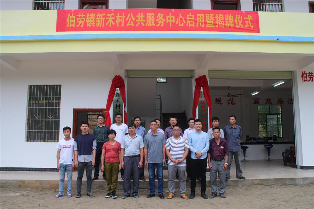 2018年4月28日上午,集團公司扶貧幫扶聯(lián)系村——靈山縣伯勞鎮(zhèn)新禾村在新公共服務中心舉行揭牌儀式。我集團公司和伯勞鎮(zhèn)人民政府、市檔案局、市林科所主要領導及駐村第一書記、包村工作組、村委全體成員齊聚新公共服務中心大樓前,共同見證新禾村新公共服務中心大樓揭牌儀式。