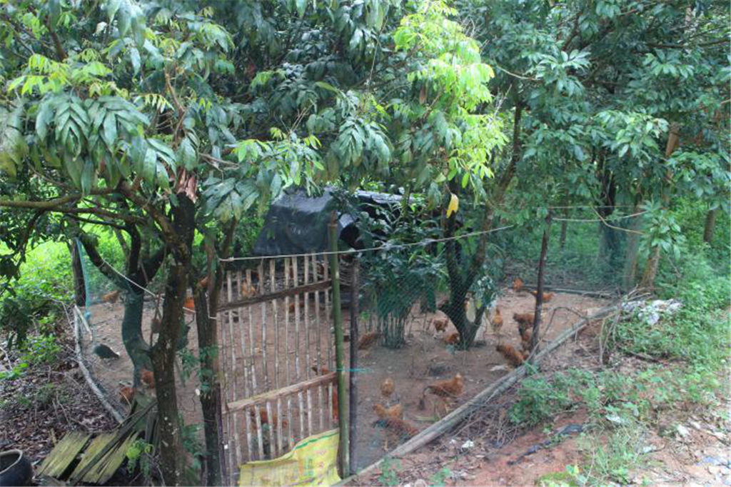 (圖為趙文博董事長(zhǎng)查看脫貧戶陳基東家禽飼養(yǎng)情況)