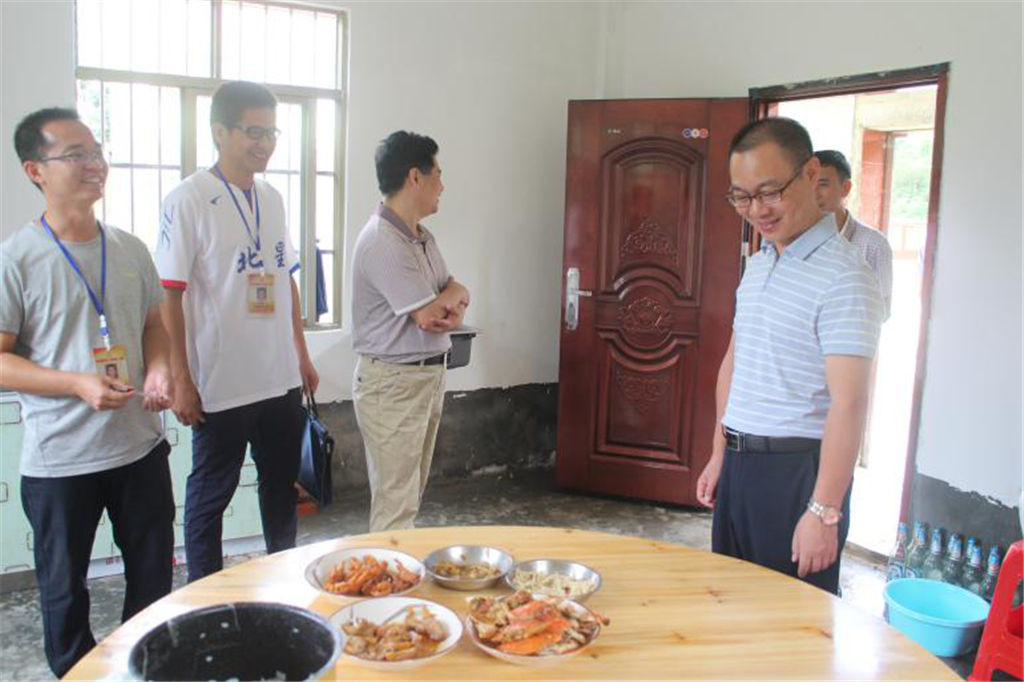 (圖為趙文博董事長(zhǎng)參觀駐村隊(duì)員廚房的內(nèi)外環(huán)境)