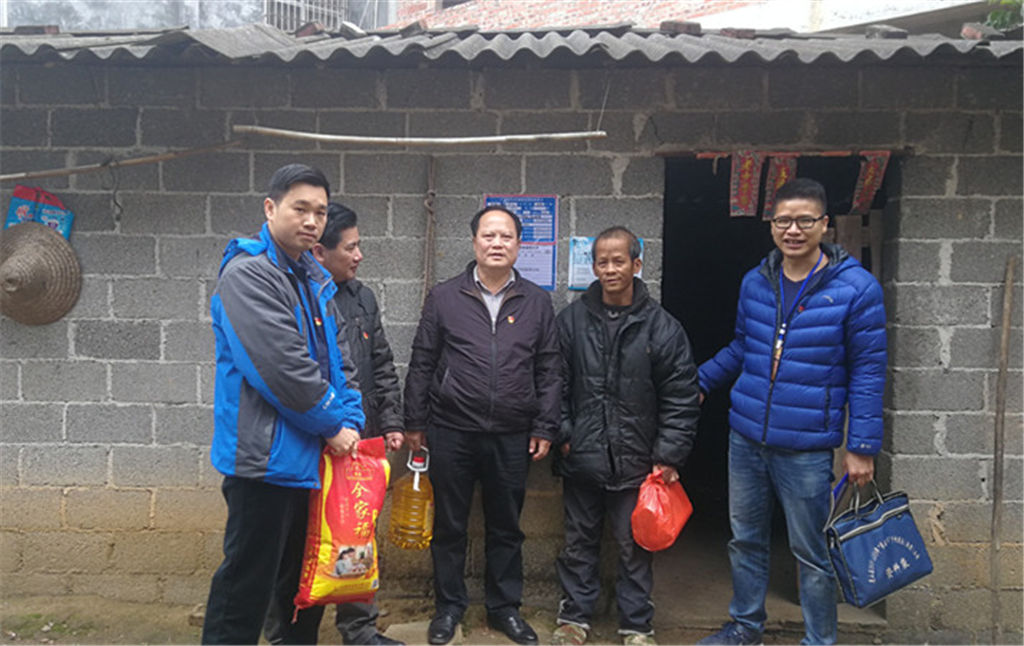 春節(jié)來臨之際,為讓困難黨員、貧困戶、村干部和駐村工作隊員渡過一個歡樂祥和的春節(jié),集團公司副總經(jīng)理楊新棟率領(lǐng)黨員干部冒著嚴寒,帶著濃濃暖意前往幫扶聯(lián)系點靈山縣伯勞鎮(zhèn)新禾村開展春節(jié)慰問活動,送上集團公司的關(guān)懷問候和新春祝福。