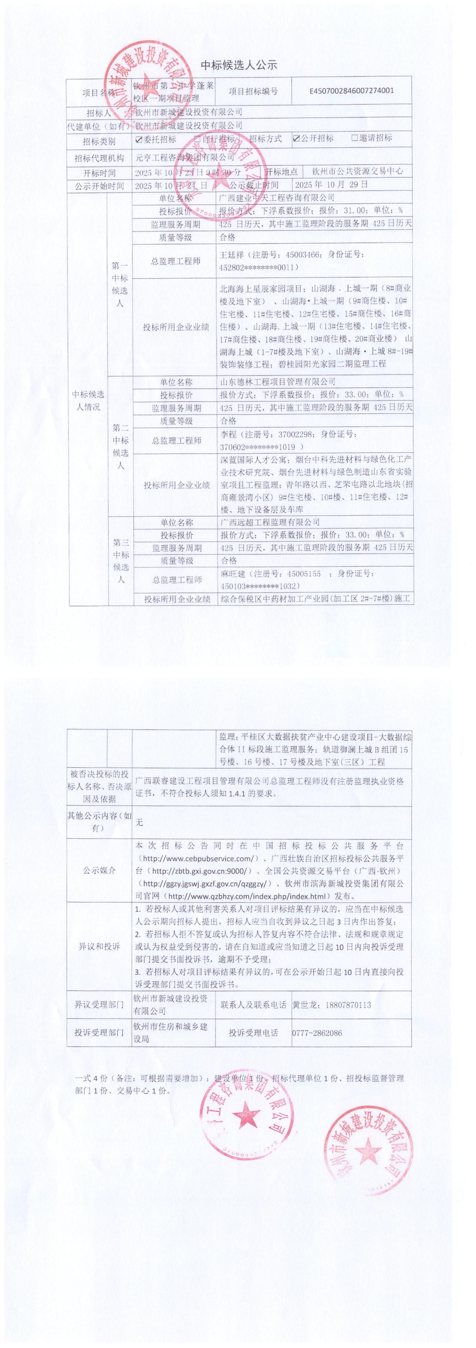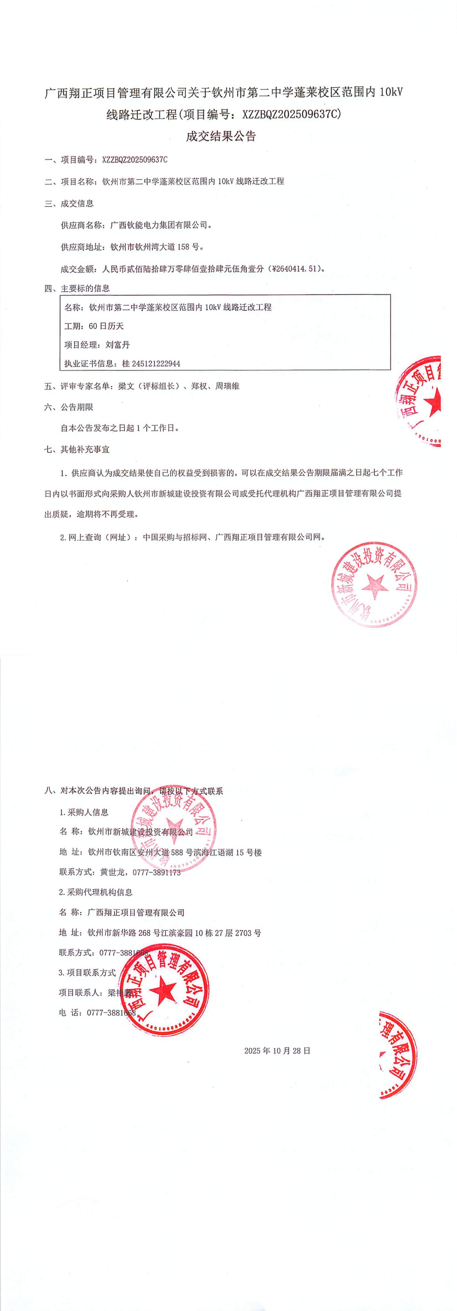 一、項(xiàng)目名稱:賓陽(yáng)縣公共配送中心勞務(wù)派遣服務(wù)項(xiàng)目 二、項(xiàng)目編號(hào):GXJT-2025-QZZC002 三、成交信息: 序號(hào) 入圍供應(yīng)商名稱 管理費(fèi)報(bào)價(jià) (元/人/月) 地址 1 廣西高校聯(lián)盟教育投資集團(tuán)有限公司 80.00 南寧市江南區(qū)同樂大道53號(hào)泉港·江南企業(yè)總部6號(hào)廠...