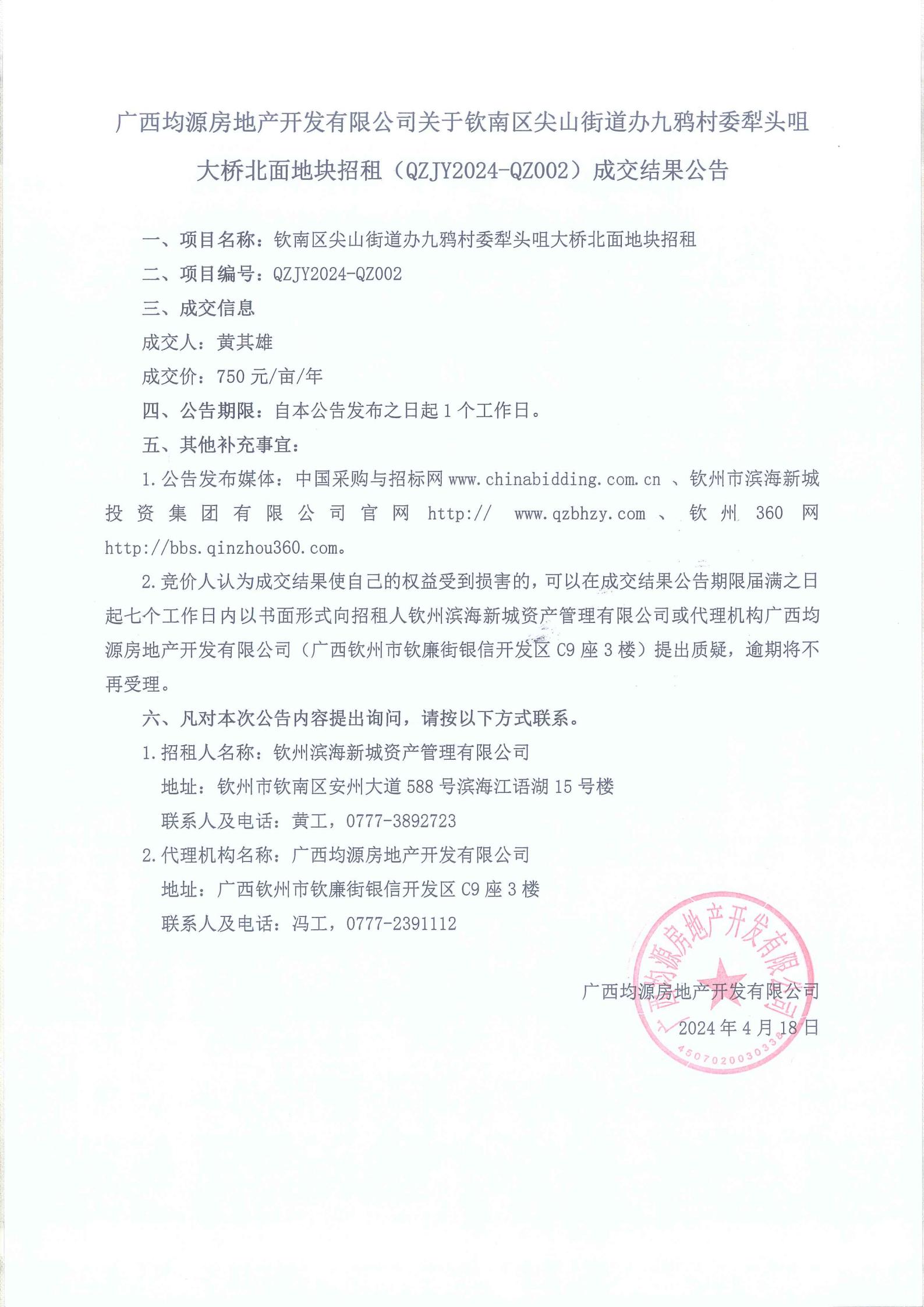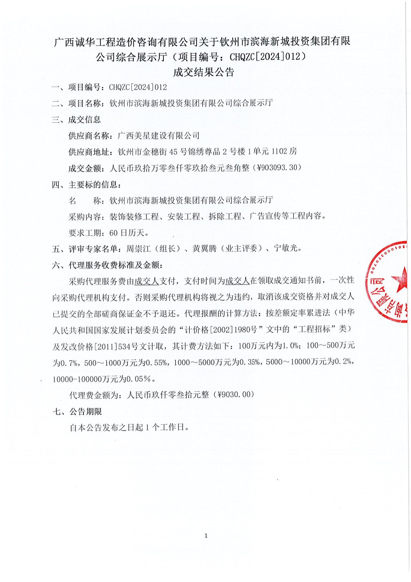 廣西冠寧工程咨詢有限公司受欽州市濱海房地產(chǎn)開發(fā)有限公司的委托,于2024年7月19日就欽州市茶山江B01-01-01地塊項目設計項目采用競爭性磋商方式進行。按規(guī)定程序進行了競爭性磋商,現(xiàn)就本次競爭性磋商的結果公告如下: 一、采購項目名稱:欽州市茶山江B01-01-01地塊項目設計 項 目 編 號 :QZZ...