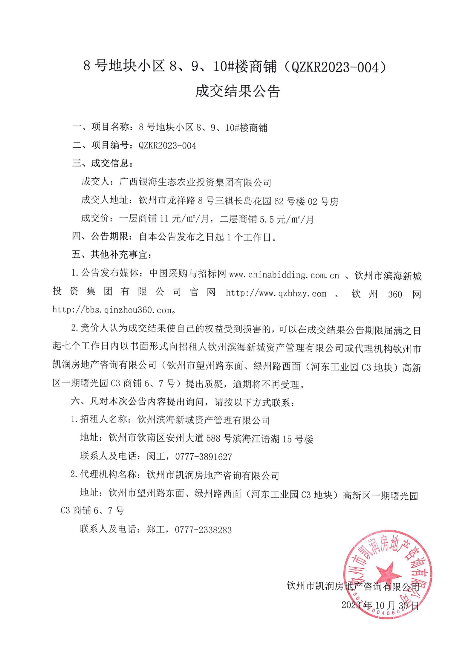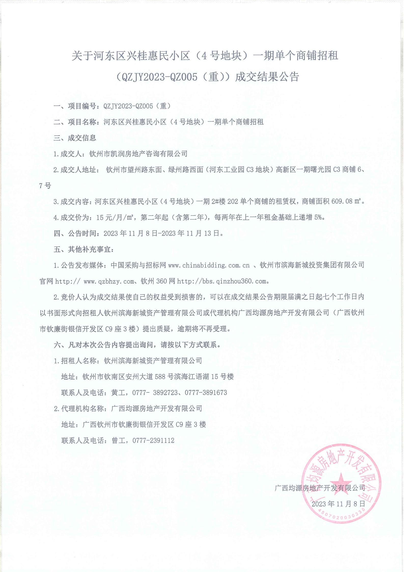河?xùn)|區(qū)興桂惠民小區(qū)(4號(hào)地塊)一期單個(gè)商鋪招租(qzjy2023-qz005(重))成交結(jié)果公告