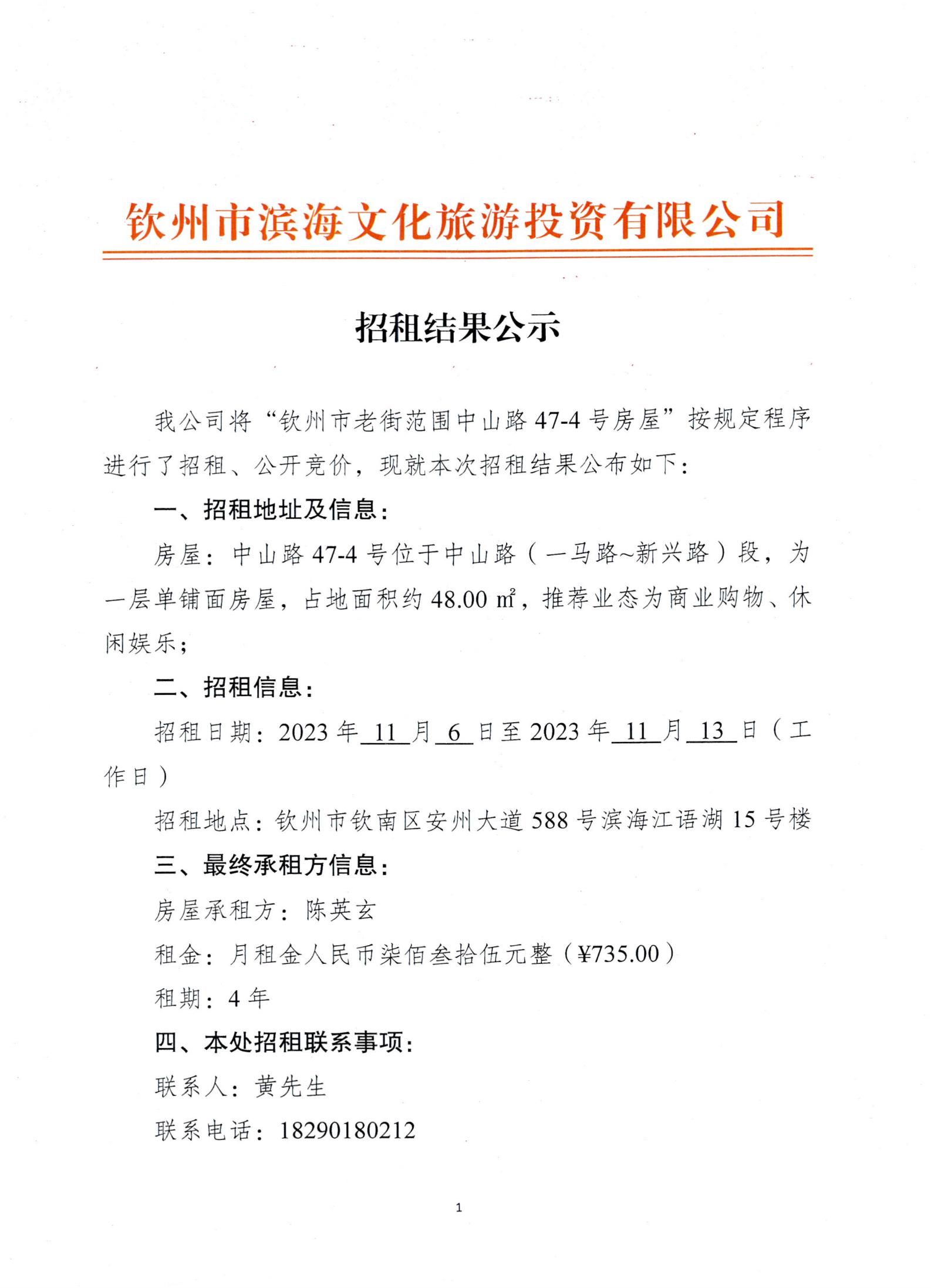 招租結(jié)果公示