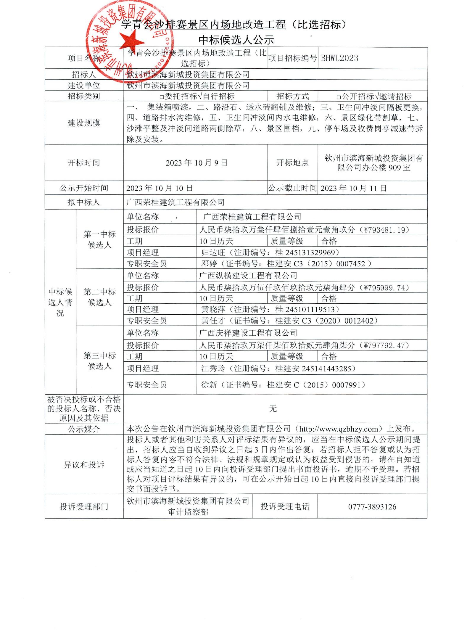 學(xué)青會(huì)沙排賽景區(qū)內(nèi)場(chǎng)地改造工程(比選招標(biāo))中標(biāo)候選人公示