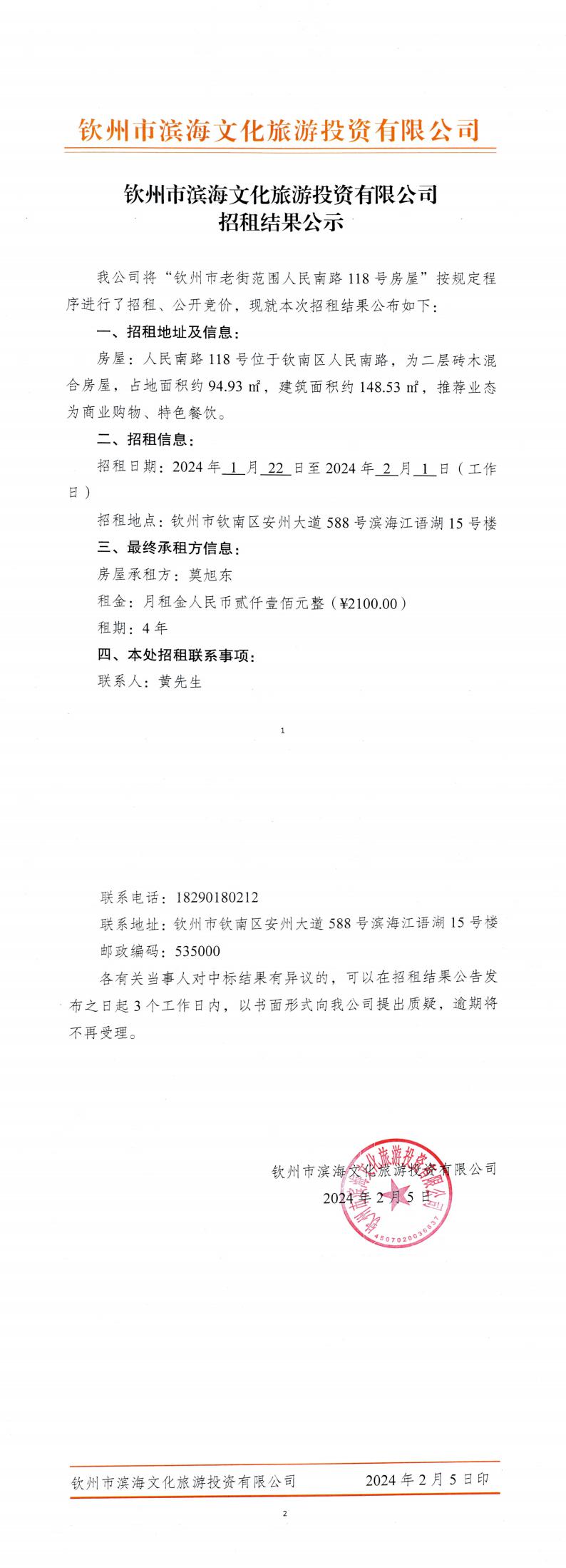 關(guān)于欽州市老街范圍人民南路118號(hào)房屋公開(kāi)招租的公示