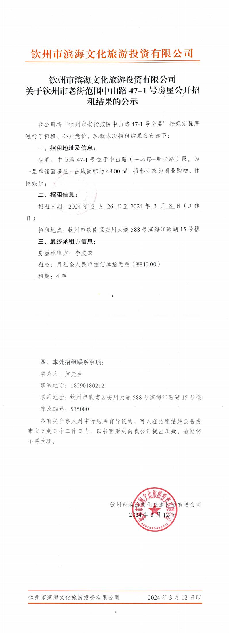 關(guān)于欽州市老街范圍中山路47-1號(hào)房屋公開(kāi)招租的公示