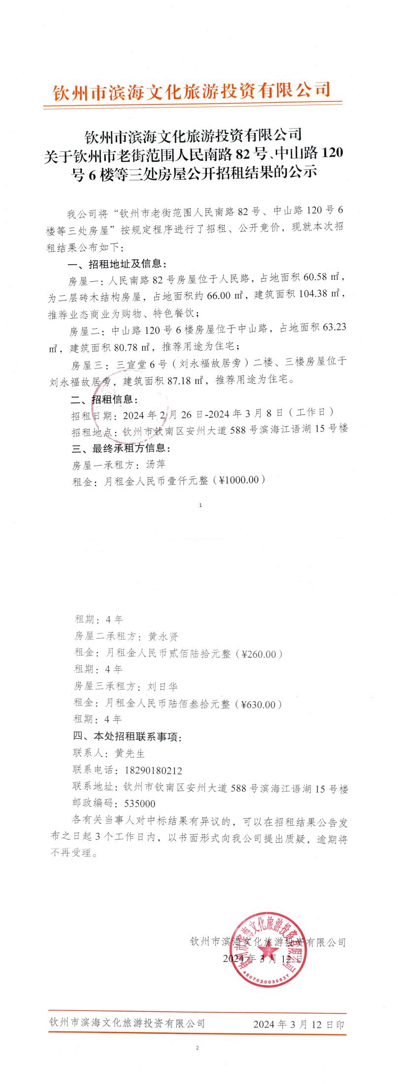 關(guān)于欽州市老街范圍人民南路82號(hào)、中山路120號(hào)6樓等三處房屋公開(kāi)招租的公示