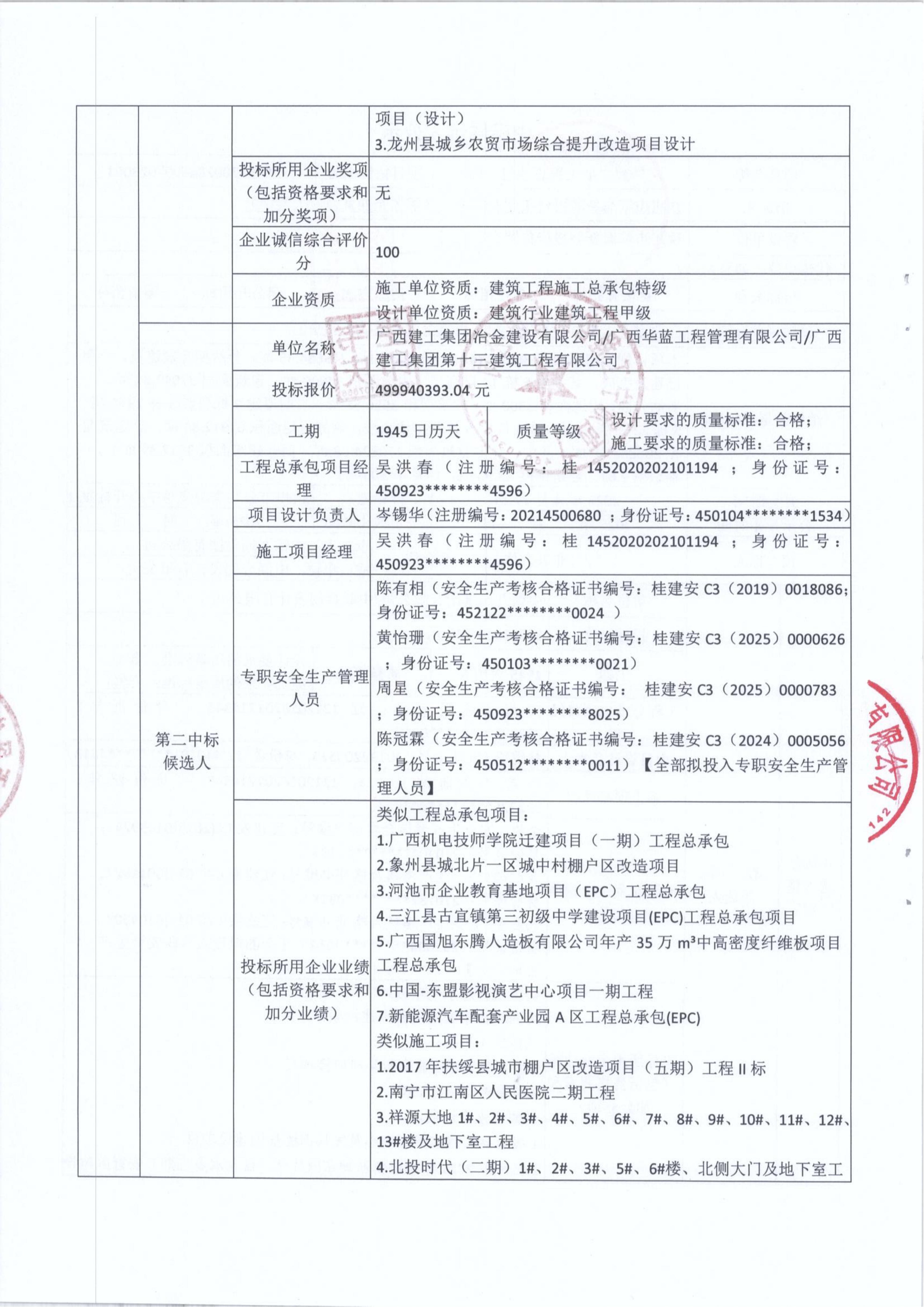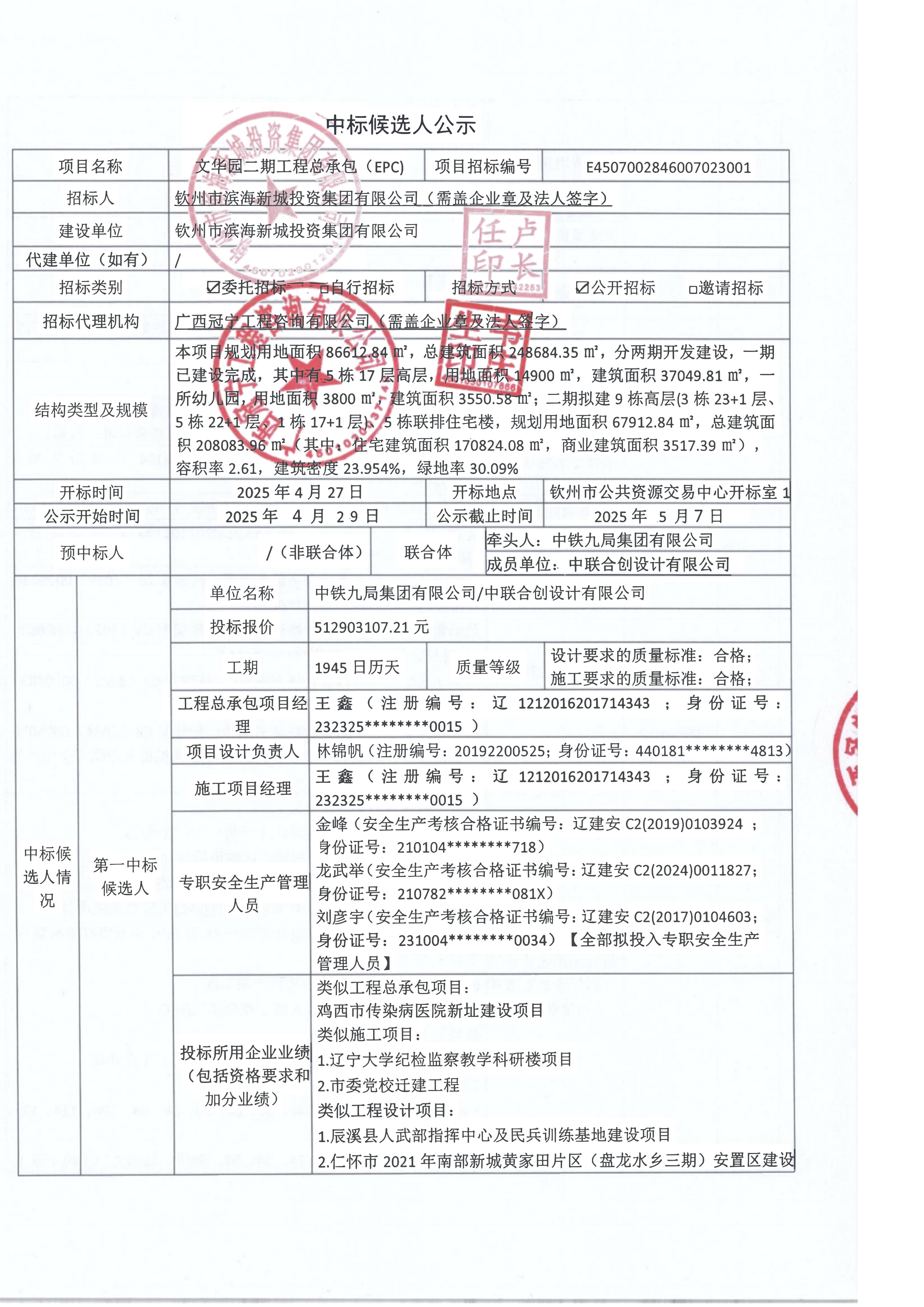中標(biāo)候選人公示