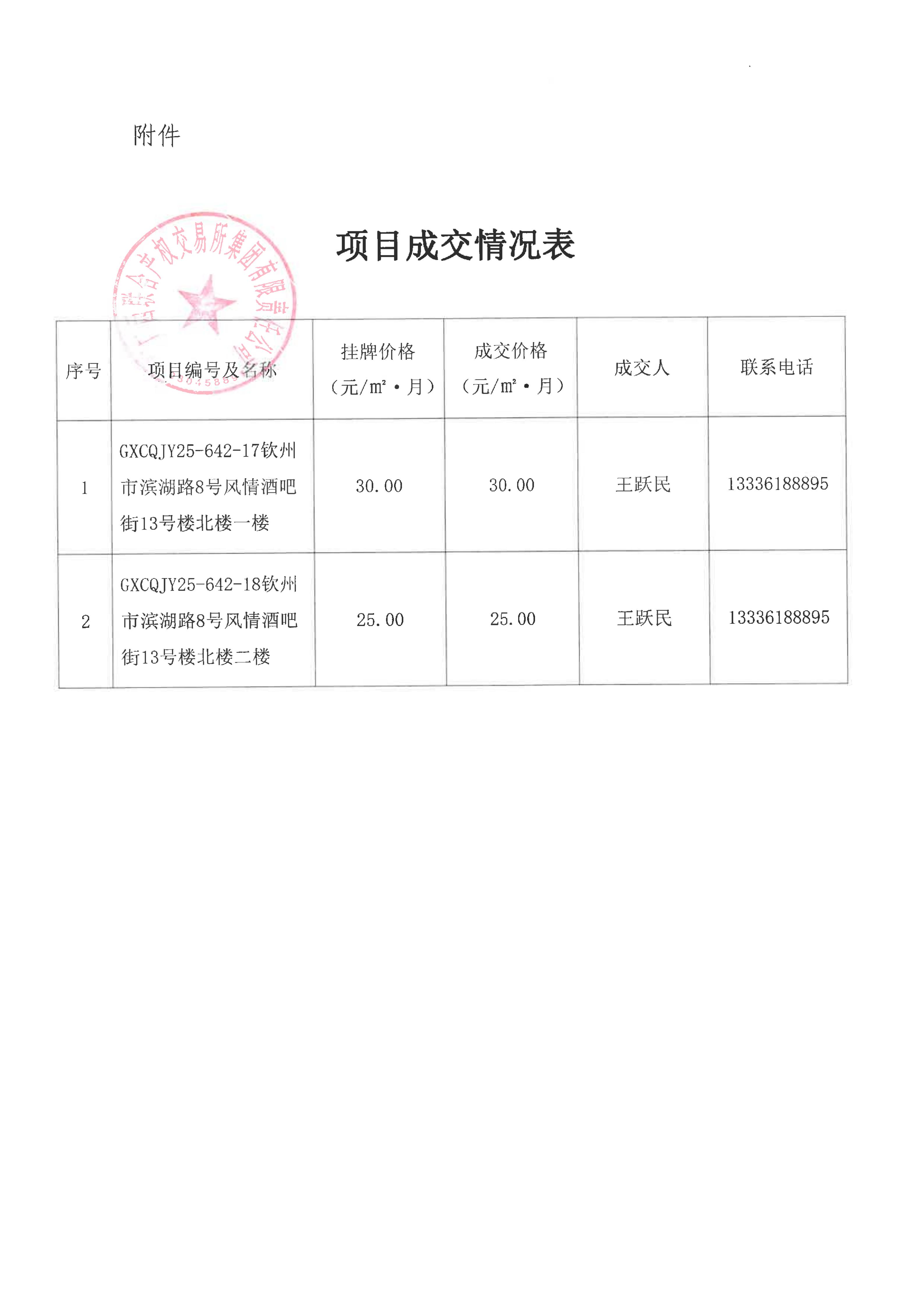 關(guān)于欽州市濱湖路8號風(fēng)情酒吧街(蘭亭街)房屋公開招租項目成交情況的函(13北)
