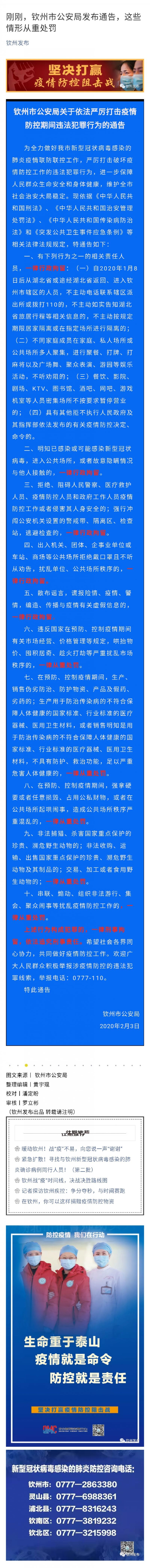 剛剛,欽州市公安局發(fā)布通告,這些情形從重處罰