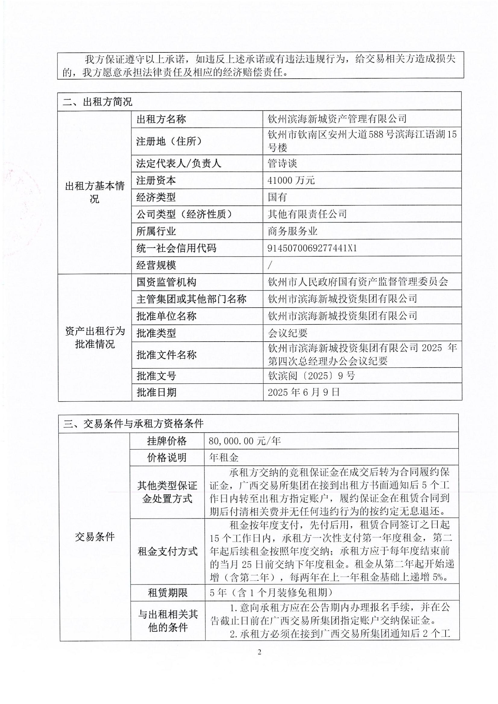 欽州市濱海新城地下綜合管廊(菩提路段)控制中心管理用房公開招租項(xiàng)目