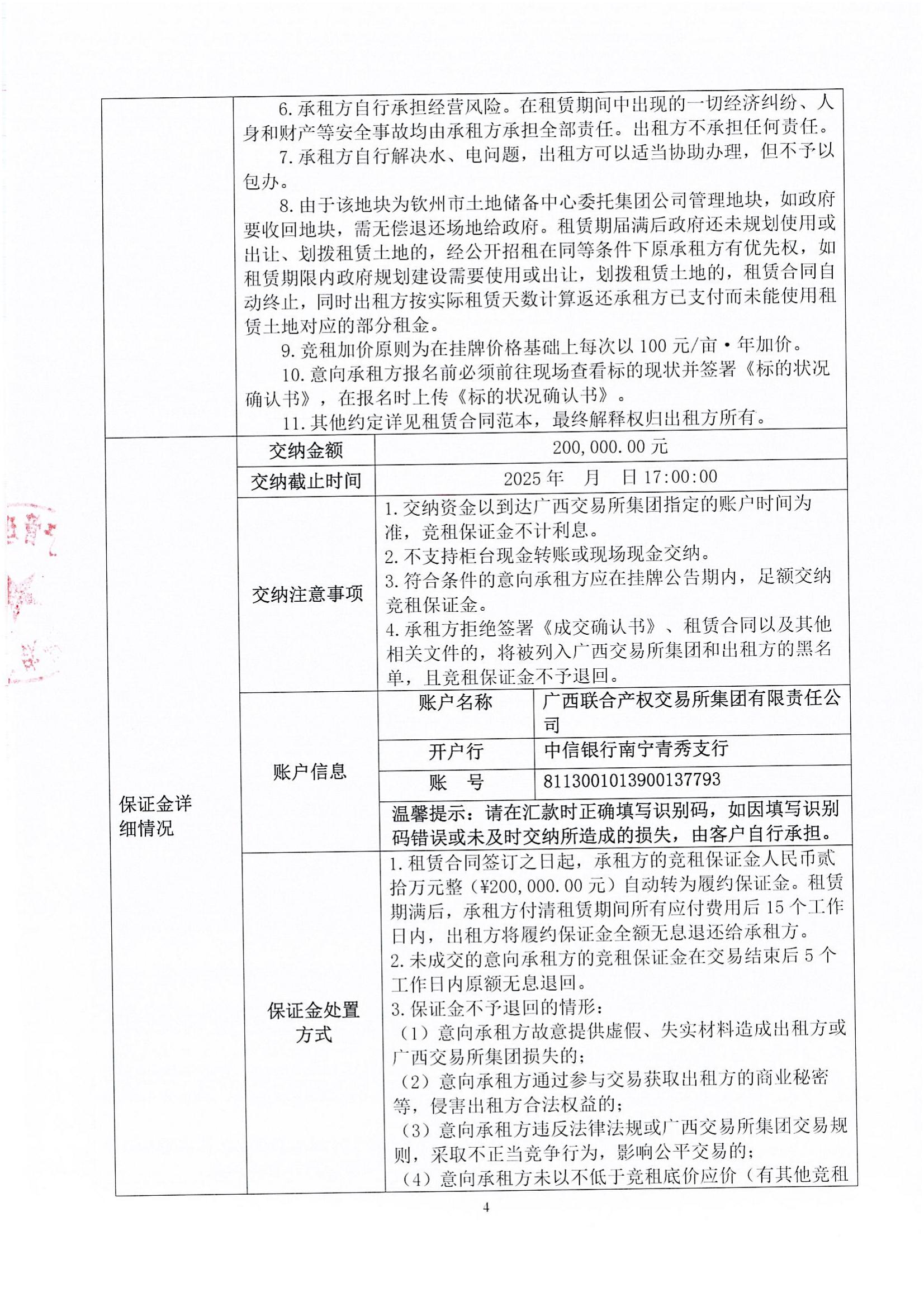 欽州市欽南區(qū)揚(yáng)帆大道與龍海路交匯處西北角地塊公開(kāi)招租項(xiàng)目