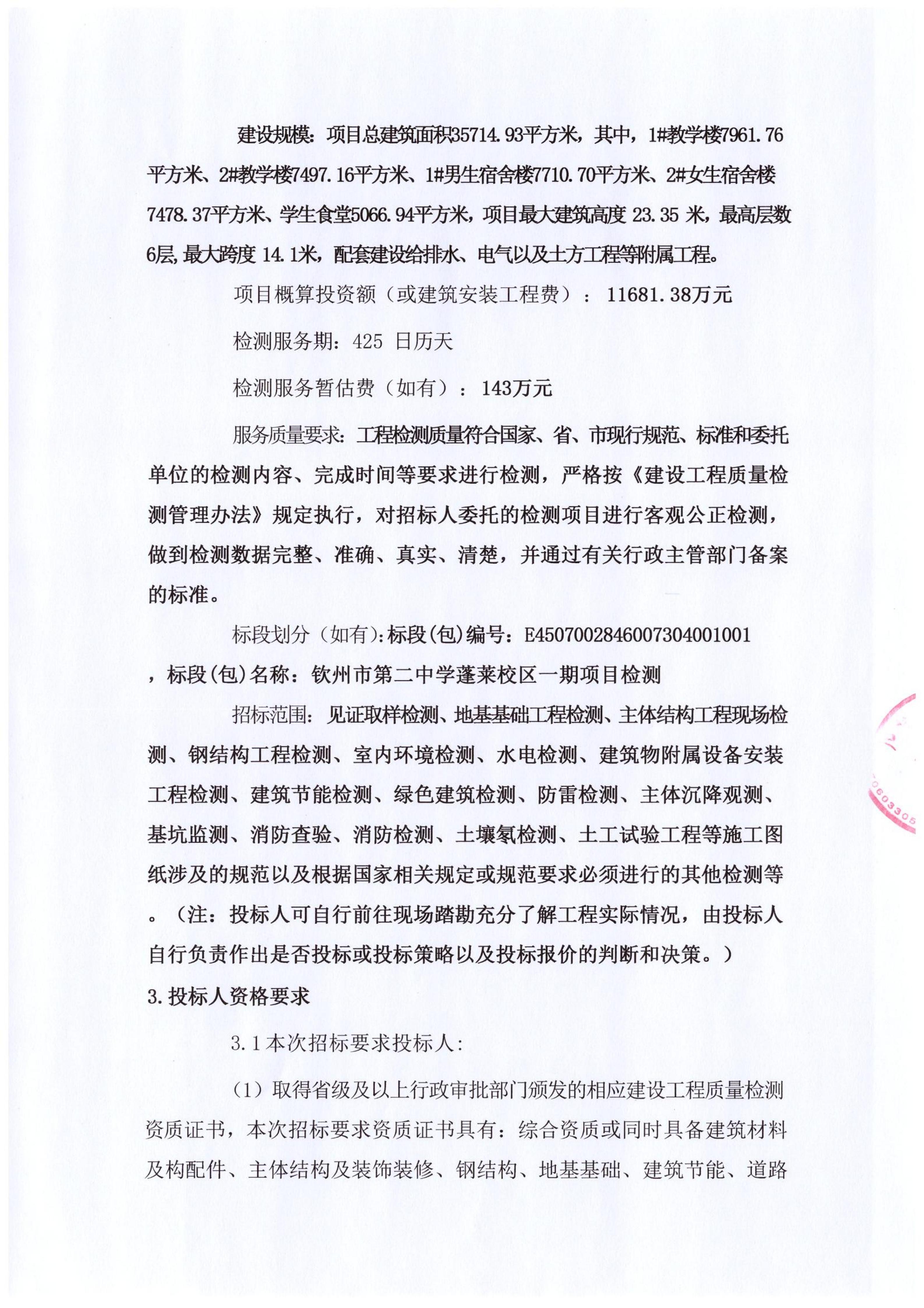 欽州市第二中學(xué)蓬萊校區(qū)一期項(xiàng)目檢測(cè)工程檢測(cè)招標(biāo)公告